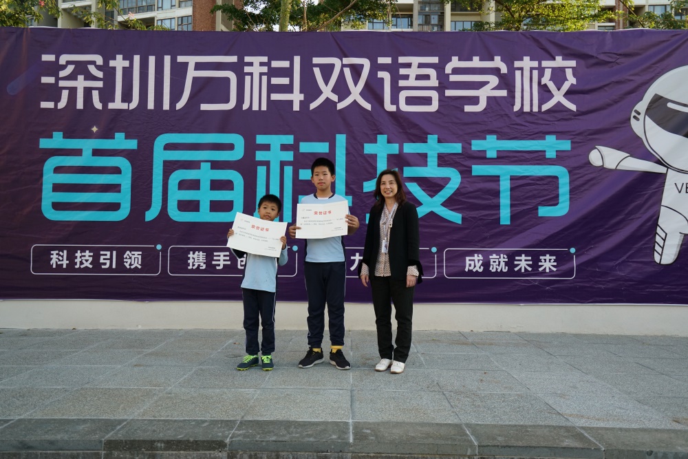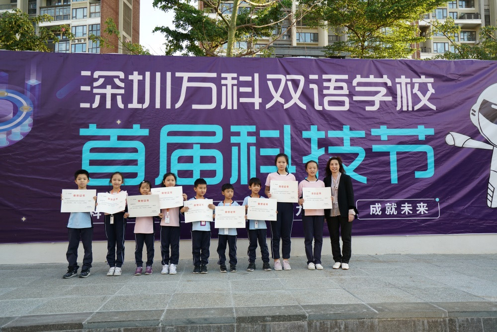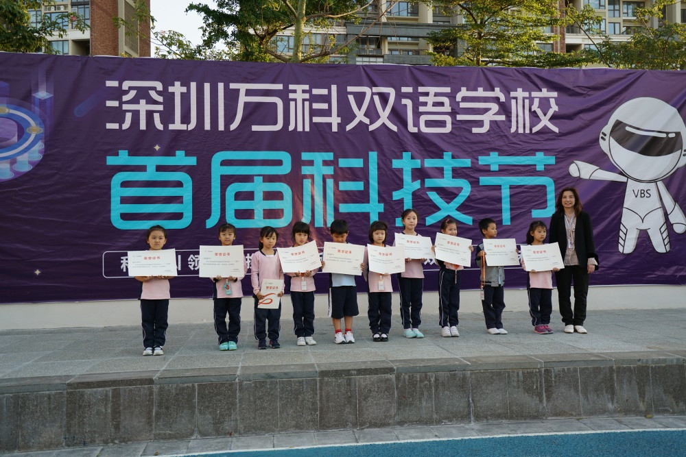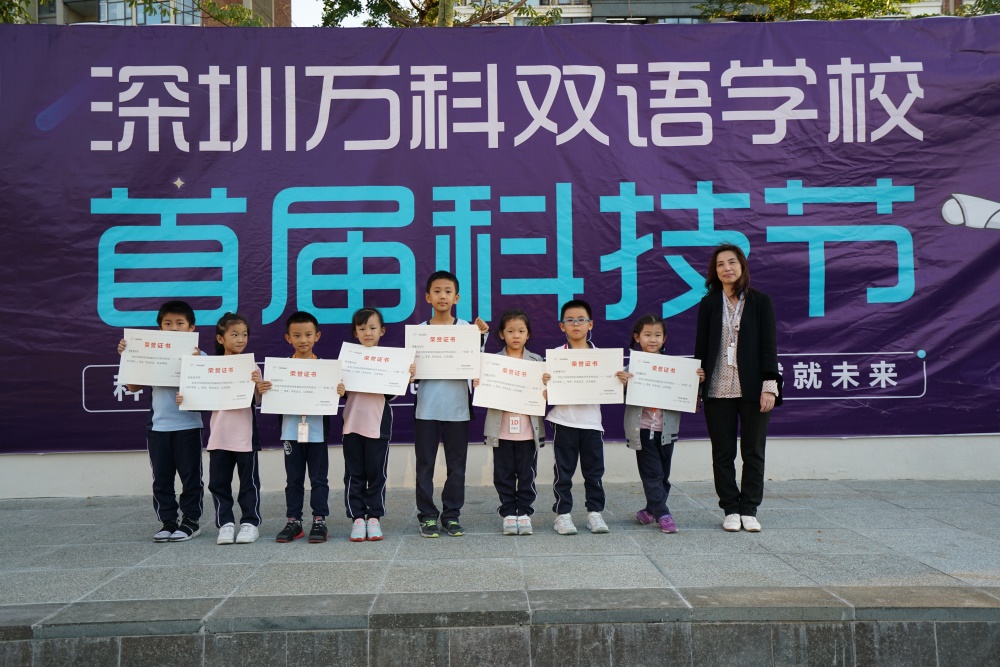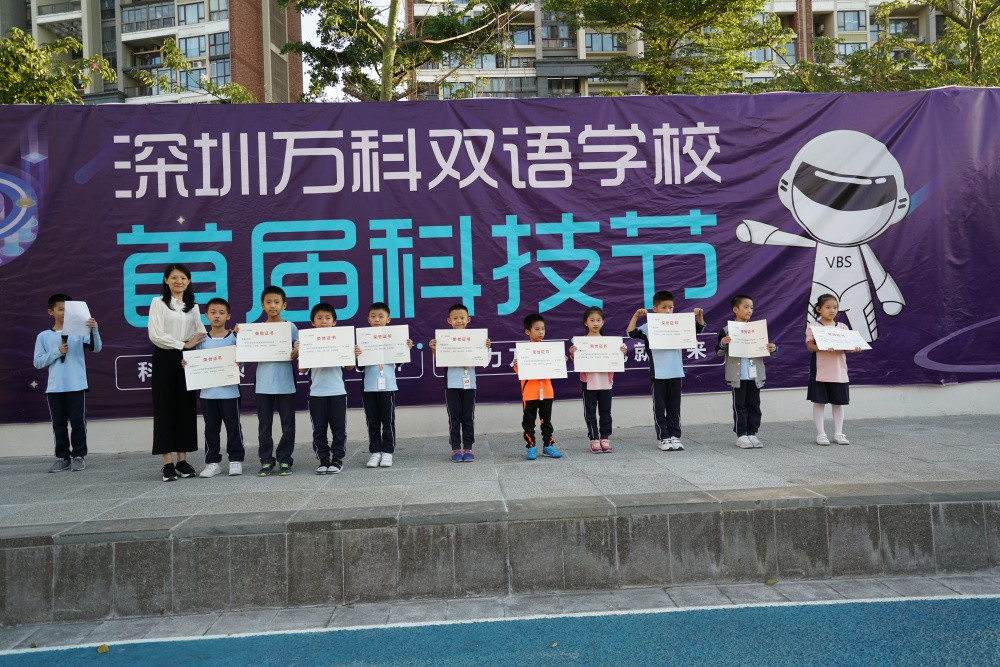 万双网讯 无人机钻圈身手矫健,引人拍手叫绝;酸甜可口的水晶红富士居然能做水果电池,让小灯泡闪闪发光;被清水浸泡的叶子变成奇妙的叶脉画,从孩子们手中跃然纸上……10月30日,历时近一个月,以“科技引领、携手创新、活力万双、成就未来”为主题的万科双语学校首届科技节完美落下帷幕。闭幕式上,共颁发奖项178个。其中小学获奖145人次,初中获奖33人次。