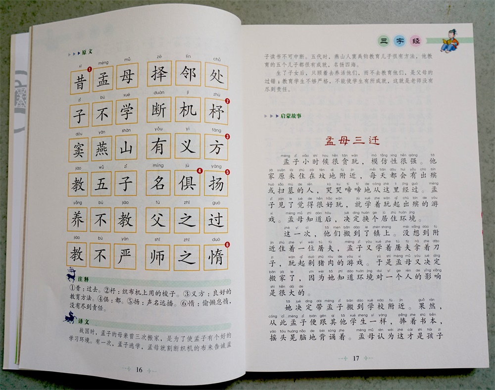 每天中午1点50分,小学生们安静地坐在教室里,认真聆听杨校长讲故事。杨校长选取了《三字经》中的经典故事进行讲述。该书是我国传统启蒙教育的第一书,书中蕴含了大量的历史典故。知名度极高,20世纪80年代被联合国教科文组织定为世界性的启蒙教材。书中讲述了中华五千年文明脍炙人口的经典故事。这些故事穿越历史、代代相传、历久弥新,它们彰显着中华民族的传统美德,浓缩了许多做人、做事的道理和智慧,同时还是弘扬中华优秀传统文化、揭示纷繁历史变迁的窗口。