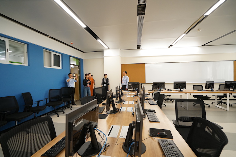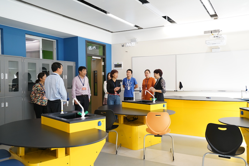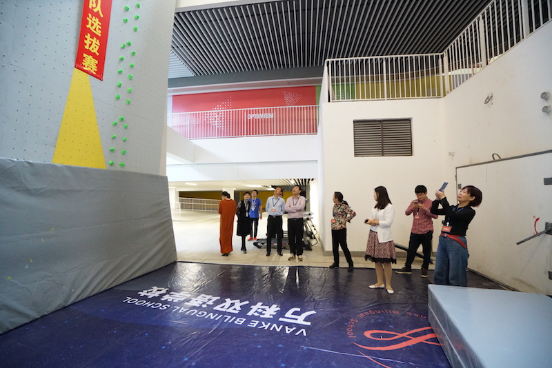 学校多功能的教室、先进的实验室、高端的苹果电脑房、现代化的剧场、大气的停车场、操场、符合国际青少年竞赛标准的专业攀岩墙、整洁的餐厅、温馨的午休房、高端、大气、上档次的教学设备设施给客人们留下了深刻印象。参观途中,万科双语学校的孩子们见到来访客人均热情有礼,大声地向老师们问好,展现了万双孩子的文明素养。
