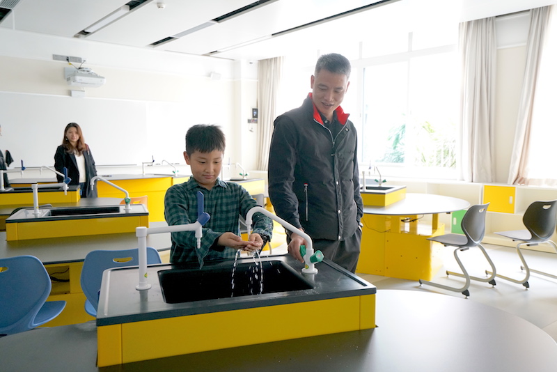 开放日当天,杨帆校长为全体家长答疑解惑。家长们尤其关心如何能够到学校就读,对于学校学位设置、学生户籍等相关规定做了了解。随后全体家长和学生参观了校园。他们对学校超前的人工智能教室、生物实验室、物理实验室、化学实验室、小班个性化教室、学校操杨设施、攀岩墙等赞不绝口。有的家长从外地特地乘飞机赶来参与,有家长和孩子在大空间玩起了国际象棋,有孩子结束后还久久不愿离去……