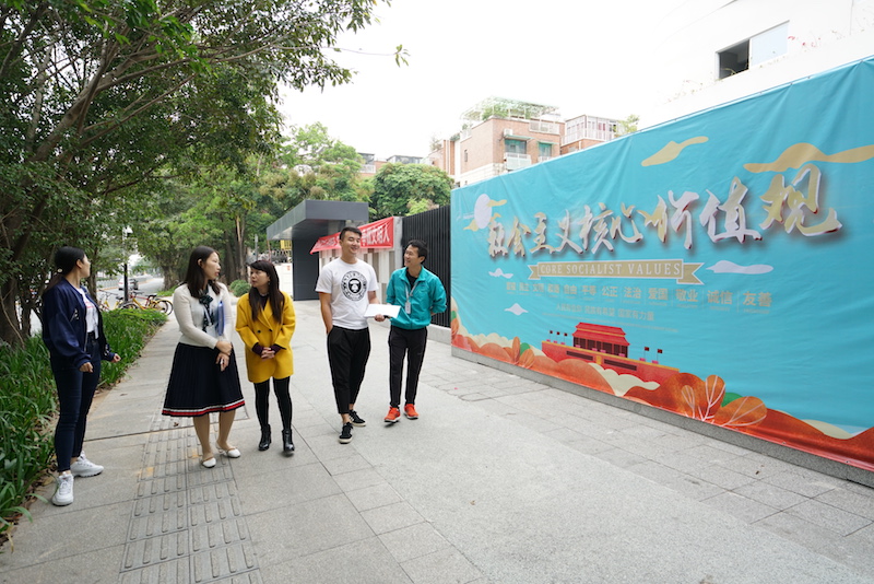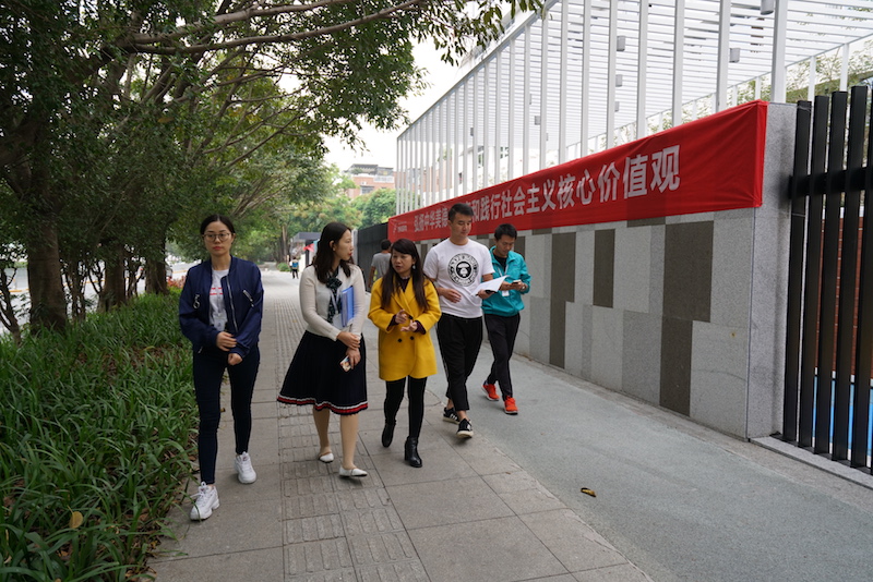 万双网讯 为做好全国文明城市测评迎检工作,12月7日下午,龙华区教育局基础教育科林叶春等到我校开展“创文”工作专项检查。杨帆校长、行政中心龚雪主任、马葳老师、总务处林进勇主任等陪同检查组巡视了校园。