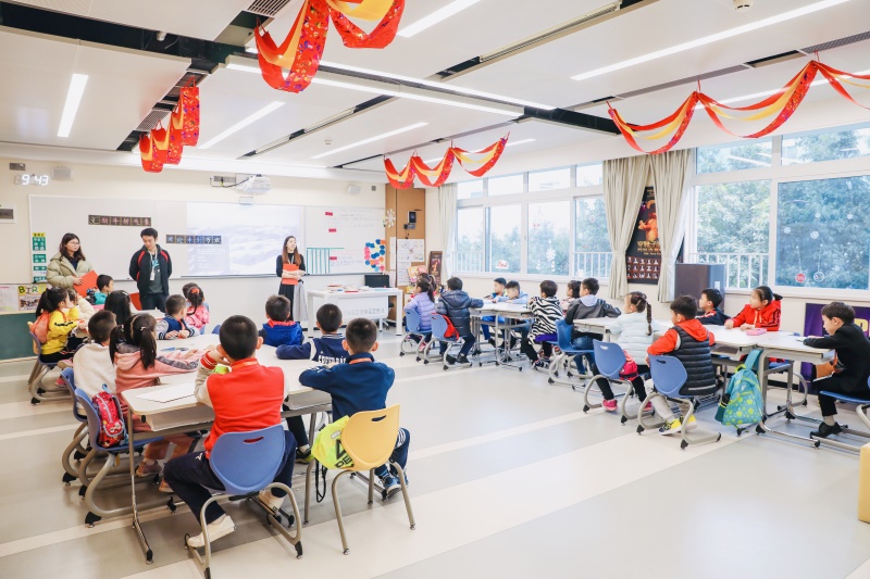 家长们参观了校园基础设施、配套设施及教学环境。学校操场采用环保材料,全软性地胶,有独立的看台区,是夜光球场,同时在操场的一侧安装了进口的芬兰儿童器械,为孩子提供更多户外运动选择。一楼大空间是孩子们打乒乓球、开展社团活动、课外选修活动的场所。学校有层层退台的的空中花园,让孩子们拥有无处不在的户外活动场地,其中户外国际象棋、木马等游乐设施为孩子们课间活动增添了无限乐趣。学生教室采用的环保墙漆,教室地胶采用亚麻籽油(天然原材料)作为粘合剂,绿色环保。目前每班 24 人,每个班级都有一个温馨的阅读角。此外,高端大气上档次的攀岩墙、剧场、实验室、电脑房等均给家长留下了深刻印象,对学校环境给予了高度评价。